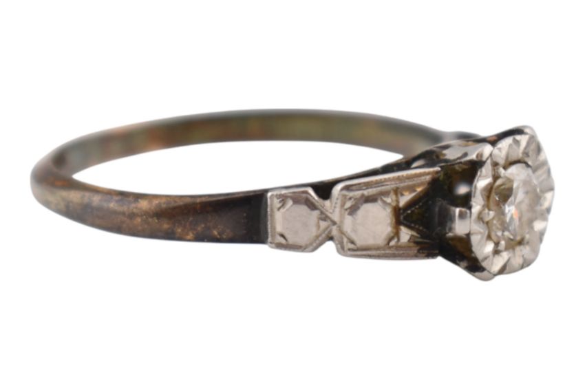 An 18ct gold and platinum single stone diamond ring. Weight 2.7g