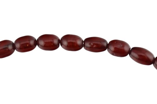 An early 20th century vintage cherry amber / bakelite bead necklace. The strung necklace with graduating beads. Total weight 76.2g