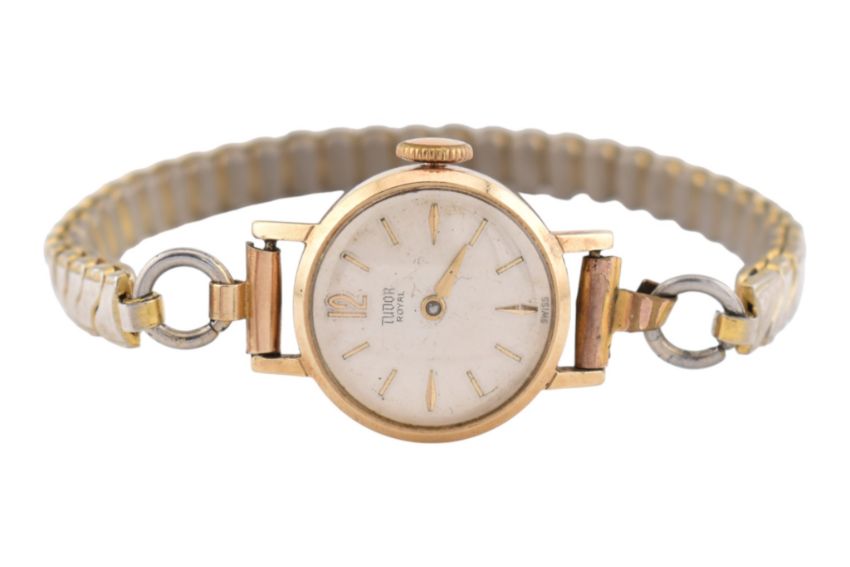 A Rolex Tudor Royal ladies 9ct gold dress watch. Set to expanding metal