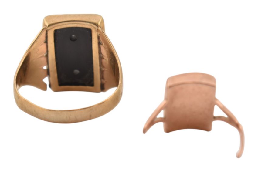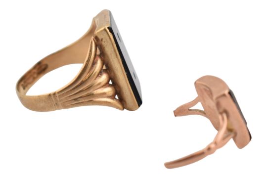 Two gold signet rings. A hallmarked 9ct gold signet ring. Hallmarked Birmingham, sponsors