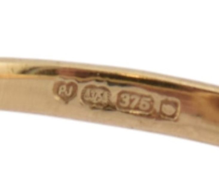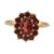 An import hallmarked 9ct gold garnet set cluster ring. Sponsors mark PJ. Weight 2.1g, size O.5