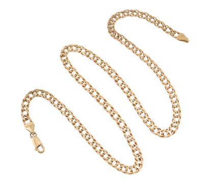 A hallmarked 9ct gold double flat linked belcher chain necklace chain. Stamped 375. Weight 12.3g. Measures 42cm