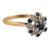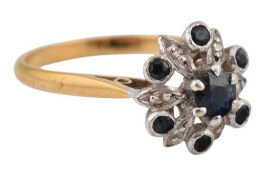 An 18ct gold, sapphire and diamond cluster ring. Stamped 18ct. Weight 3.6g. Size O.5
