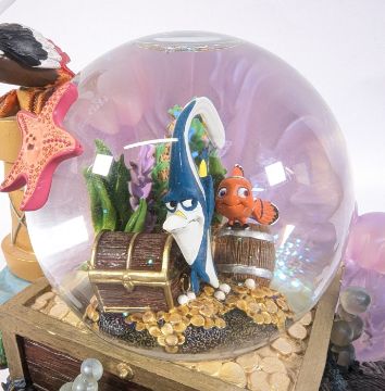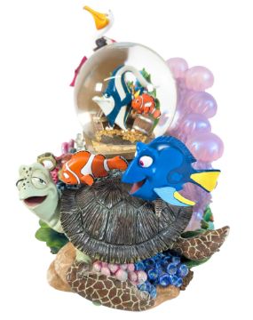 Disney - an original Walt Disney/ Pixar 'Finding Nemo' battery operated musical wind up snow globe, featuring Marlin, Dory, Nemo, Gill, Squirt, Nigel, and Crush. Measures approx. 23cm tall.