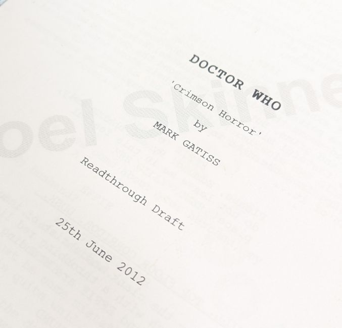 Doctor Who (BBC sci-fi series 1963 to present) - 'Crimson Horror' (2013 Eleventh Doctor era) - 3x original scripts comprising of the readthrough draft (dated 25th June 2012, 62pp.) draft 4 (dated 20th June 2012, 60pp.) and the readthrough draft (dated 28th June 2012, 60pp.). On white stock, with original metal fastener. Generally in good production used condition. From a member of the VFX crew. (3)