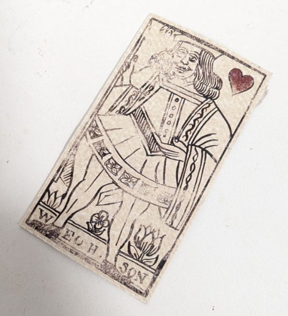 Wolf Hall (S2 2024) - two sets of screen used prop playing card sets. Two complete sets, custom made for production to resemble 16th century cards. Printed, each with traditional form playing card designs. Bound by ribbons. Supplied with their original production bag labelling them as 'Ladies In Waiting Cards'.