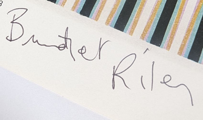 Art - Bridget Riley (English painter, born 1931) - ALS dated March 1977 in response to a Bristol-based fan and artist, plus a signed clipped sheet of one of her pictures, 'Final Study For Painting, 1972'. Letter signed in blue ink, the clipped page in black ink. Largest 22cm x 19cm. (2)