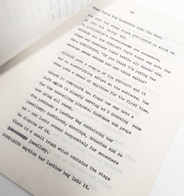 The Sid Colin Collection - Up Charlie! (1971 unmade sequel film to Up Pompeii, starring Frankie Howerd and written by Sid Colin) - a previously unrecorded manuscript for an unproduced comedy film, likely a planned third sequel film, eventually replaced by Up The Chastity Belt. 35pp on typing paper, dated to the end 'Sid Colin May-June 1971'. The film appears to follow Howerd's character, Sir Lancelot Lurkington, as a classical actor. The first scene '...we see the facade of the Theatre Royal, Drury Lane, as it was in the days of Garrick'. Likely the only surviving document from the planned film. Unique piece of comedy history.