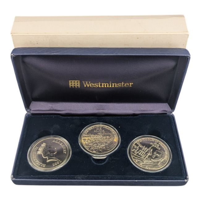 A contemporary 2002 Channel Islands silver proof three coin set. Including;