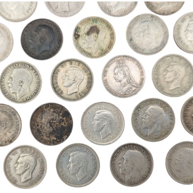 A collection of 19th and 20th century British silver circulated three pence coins. Including;