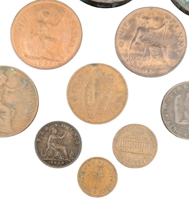 A collection of 18th, 19th, and 20th century British and Foreign circulated copper coins. Including;