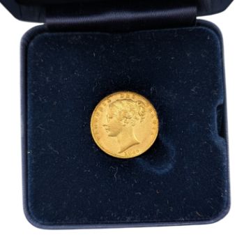 Obverse – Queen Victoria veiled 'Young head' bust (left). Incuse W.W. mark.