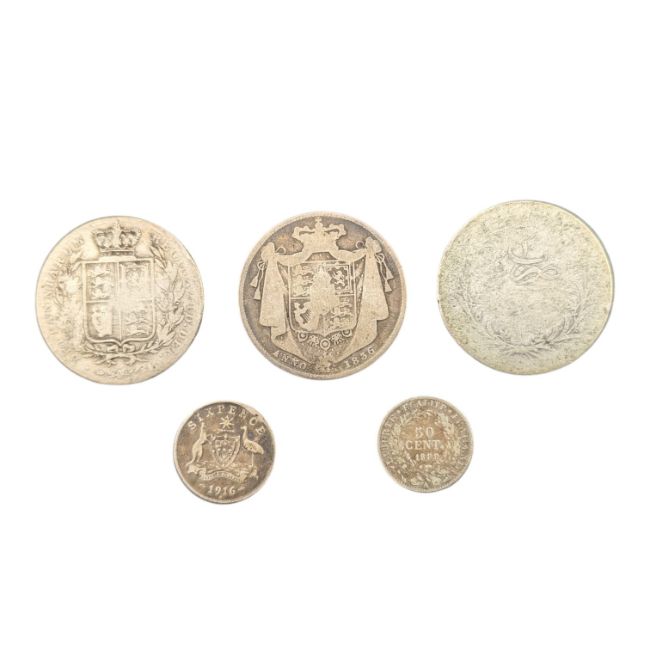 Alongside a selection of other examples including an Egyptian Five Qirsh, Queen Victoria Half Crown, and others.