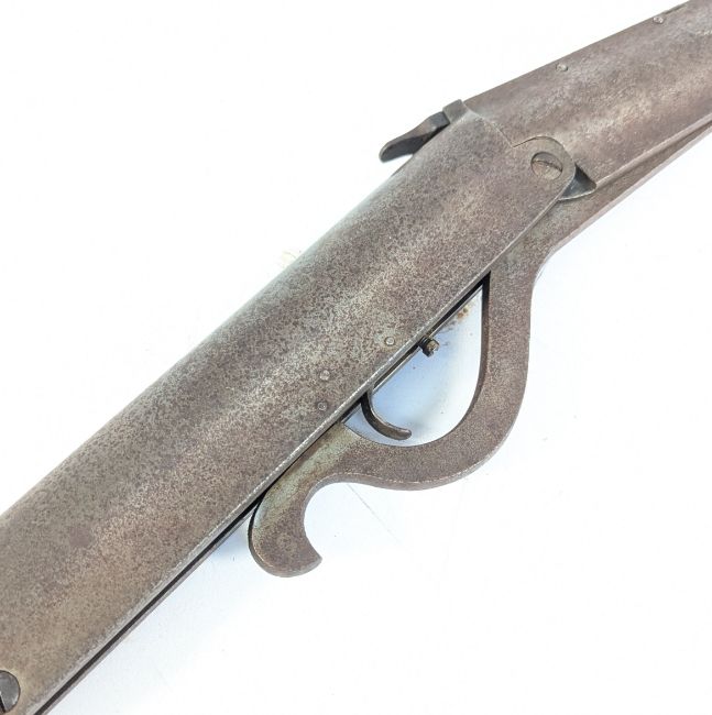 A 19th Century US United States Quackenbush break barrel air rifle. Stamped on the breech 'H M Quackenbush Herkimer NY Pat April 1871, May 21. 72 & Re Sept 28. 82. Mechanism cocks and dry fires. Measures approx 89cm.