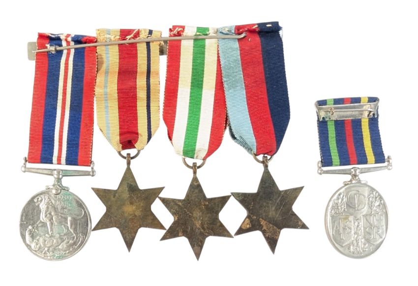 A WWII Second World War medal group comprising; British War medal, 1939-1945 Star, Italy Star and Africa Star together with a Queen Elizabeth II Civil Defence medal. Suspended on original ribbons.