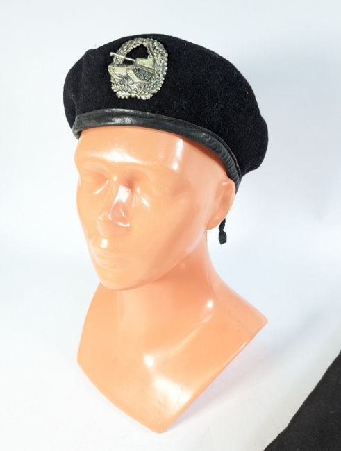 A collection of assorted Militaria to include; post war 1950s German Tank beret, uniform kit bag, silver plated War Department stamped box and a Queen Elizabeth II cased Faithful Service medal.