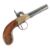 A 19th Century percussion cap / hammer action pocket pistol having a walnut stock, brass lockplate etched with scroll motifs and a turn off barrel. Proof marks on the under side of the barrel near the breech. Mechanism cocks, half cocks and dry fires. Measures approx 19cm.