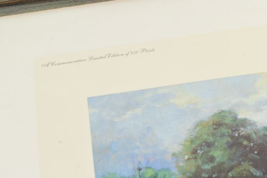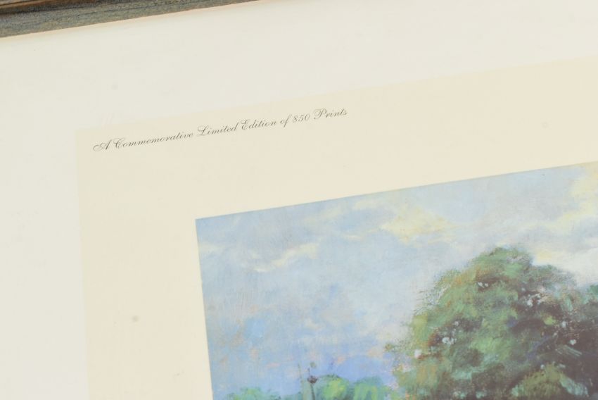 After Alan Fearnley ( British b. 1942) - a Limited Edition signed print by British artist Alan Fearnley. The print depicting Jean Alesi on his way to his first Formula 1 victory driving the number 27 Ferrari 412T2 on 11th June 1995 at the Canadian Grand Prix, Circuit Gilles Villeneuve, Montreal. Signed in pencil to the lower right corner. Limited No. 521/850. Framed and glazed. Measures approx 57x75cm.