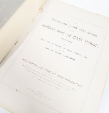 Queen Victoria - a collection of works celebrating the life and reign of Queen Victoria, to include; 'The Illustrated London News Record of the Glorious Reign of Queen Victoria..etc' first edition, published by the Illustrated London News in 1902, being illustrated with numerous India proof photogravures and in fair condition with loss and closed tears to the spine, together with 'Sixty Years a Queen', a complete 10 part periodical by Sir Herbert Maxwell Bart in 1897, illustrated with chromolithographic plates, with age toning.
