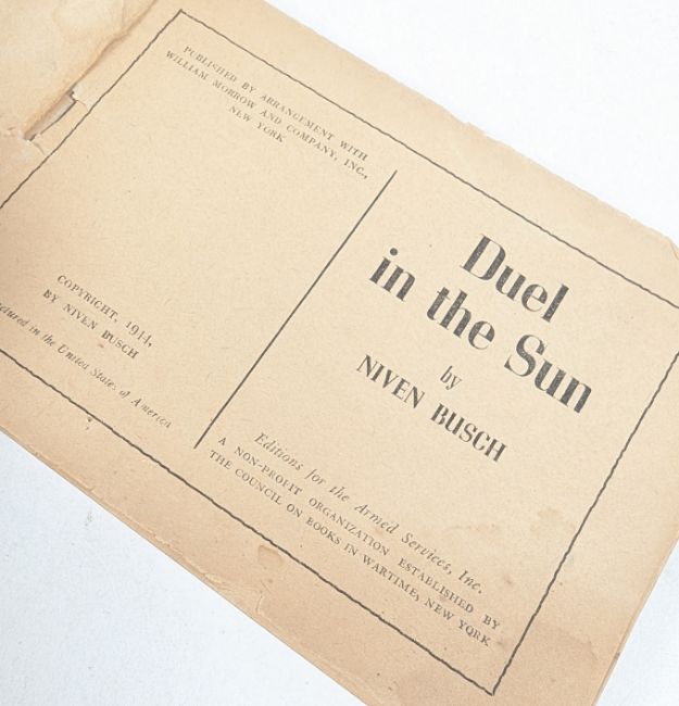Wartime Books - a collection of 2 stories written about or during the WWII Second World War, comprising; 'The Two Types: Being the Saga of the Two Jaunty Heroes who have Given us the Best Laugh Since the Campaign Began' (c1945 first edition) by Jon [John Jones], an illustrated wartime comic following two British officers, and 'Duel in the Sun' by Niven Busch (1944 scarce Armed Services edition, front cover detached), an historical Western novel later adapted to film in 1946, together with 'Kimberley Under Siege' an account of the 1899-1900 siege of Kimberley which took place during the Second Boer War.