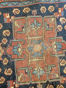 An early 20th century carpet floor runner rug. Rectangular form with central medallions encapsulated in a panel with repeating borders. Measures approx: 371x92cm HS Code: 57024230 Weight Approx: 10kg
