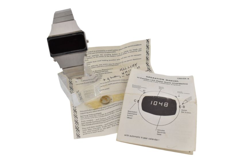 An LED Beltime stainless steel wristwatch with a box with paperwork. Untested.