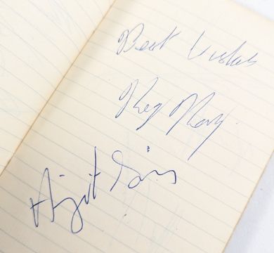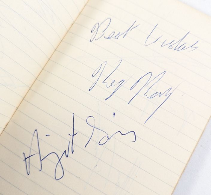 From the collection of John Short, a well-known local autograph collector in the Bristol area who amassed over 50,000 autographs in his lifetime. His other loves were Wresting and Speedway. As a young boy John attended many local wrestling matches and could always be found with his autograph book in hand. In 1975 he became a Wrestling Master of Ceremonies and Timekeeper, a career which he continued for over forty years. In the wrestling community, he was affectionately known as 'the legend'.