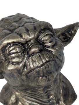 Star Wars - Episode I The Phantom Menace (1999) - an original production made Yoda puppet head by Phil Eason, likely made for his design of the female version, Yaddle. Fibreglass / resin, painted gold. Full size, approx 36cm ear-span. Generally in good condition, with some minor wear from production.Provenance: previously sold at Ewbank's in 2023. Copy of original invoice present.