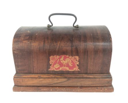 An early 20th century Pathe Ltd made phonograph. Maker's details engraved to front, housed within it's original case which retains the label to the front. Lacking the speaker horn, but retaining original winding handle. Measures 29cm long.
