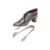 A collection of vintage 20th silver plate items, including napkin holders, Elkington salt and pepper shakers, hipflask, white metal silver high heeled shoes pin cushions, leather change purse.
