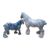 John Bourdeaux Pottery - Two contemporary horse ceramic sculptures. Comprising of a larger horse figure with a lustre glaze, and another smaller example in a blue drip glaze decorated with holes. Both with the makers sticker to the sides. Largest measuring approx. 28cm tall.John Bourdeaux (B.1946) is a master potter based on St. Mary's, the largest of the Isles of Scilly, where he has operated his studio for nearly 50 years.