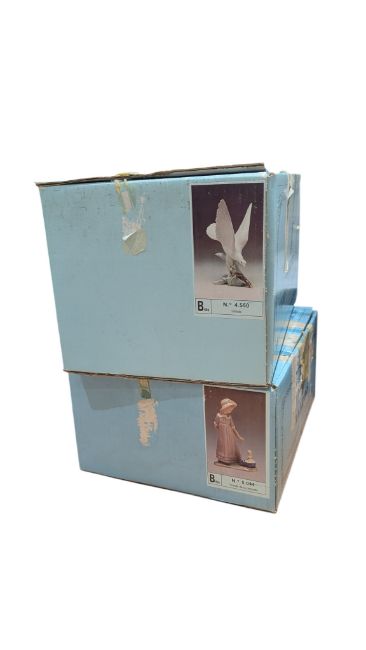Lladro - Collection of three vintage 20th century Spanish Porcelain figures. The collection to include Don Quiote, Turtledove, and Pulling the Wheelbarrow. Two with orignal boxes.