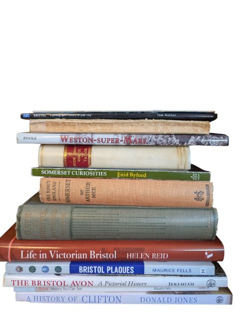 Local Bristol interest - a collection of works on Bristol, Bath and the surrounding areas, to include; 'Bath & Bristol' by Stanley Hutton, 'A Book About Bristol' by John Taylor, 'Bristol Plaques' by Maurice Fells, 'The Somerset and Dorset in the Sixties' by Ivo Peters, and other. Approx. 15x books.