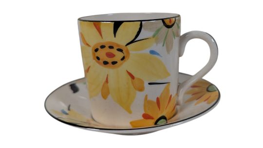 Tamsware - Early 20th century Art Deco ceramic coffee set. Comprising of a coffee pot, coffee cups, saucers, three large plates, bowl and milk jug. Most marked to the base. Sold as seen. Decorated in a hand painted yellow floral design.
