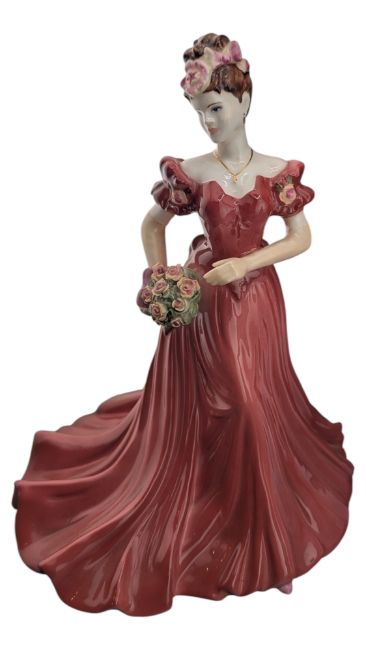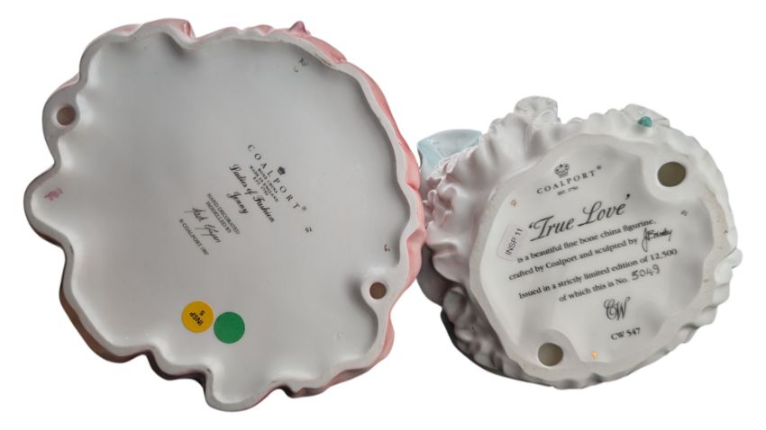 Coalport - Three 1990s / 2000s fine bone china lady figures. Comprising of 1997 Ladies of Fashion Jenny figure, True Love limited edition no. 5049 / 12500 CW547, and 2001 Happiness figure. All unboxed and marked to the base. Largest measuring approx. 22.5cm tall.