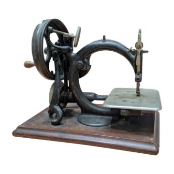 Willcox & Gibbs - An early 20th century hand sewing machine. The machine having engraved sewing surface, with curved body on wooden base. Made in USA.