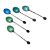 A collection of five vintage mid 20th century enamelled cocktail spoons. Each featuring shell style enamelled back in shades of green and blue, with rounded topper to handles.