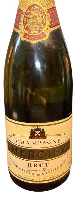 An assortment of three French champagne bottles. The lot to include two Gossett Brut Grande Reserve champagne bottles, 750ml. Together with a Eugene Mercier Brut champagne bottle, 12% vol, 750ml. All seals appear intact, tin covering on Gosset champagne slightly loose but present.