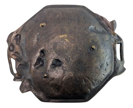 A 19th century French Art Nouveau bronze worked dish. The dish of octagonal form having Art Nouveau leaf decorations, finished in brass with handles to each side.