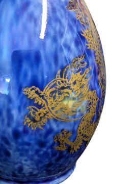 Daisy Makeig-Jones for Wedgwood - an early 20th century circa 1920s lustre hand painted porcelain bulbous vase in the Dragon pattern. The flared neck vase having a gilt-banded rim over a mottled blue ground with a gilt dragon and cricket. Stamped to underside, Z4829 F.