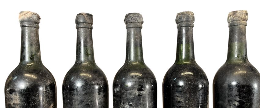 Twelve bottles of 1963 vintage Dow's port. Each bottle with no label. Wax seals state 1963 on each. Each 75cl bottle. Fill levels low neck to shoulder, one bottle below half. Outer wax seals all present but with signs of deterioration, some with mould signs. Two bottles with evidence of seepage.