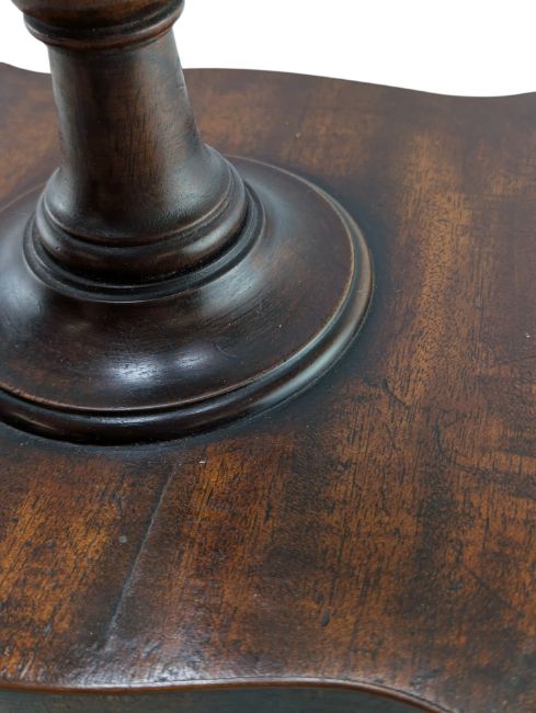 A George III early 19th century circa 1810 mahogany counter gentlemen's shaving mirror. The swing mirror of armorial form with circular pedestal support, all raised on shaped single drawer base with ball feet.