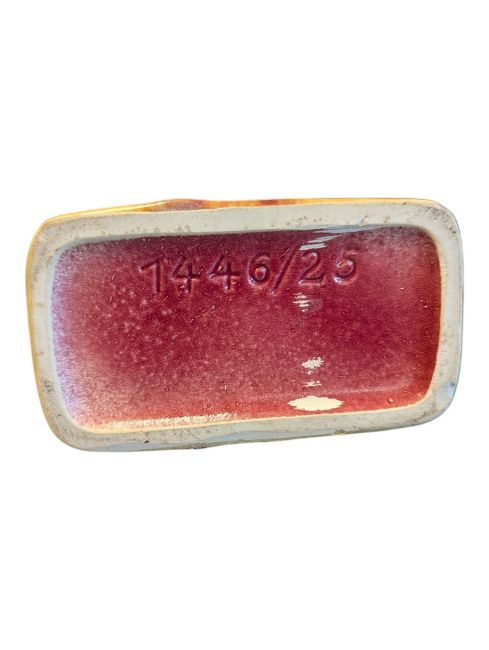 Uebelacker Keramik ( Ü-Keramik ) - Late 20th century West German pottery chimney vase. Comprising chimney shaped form with a cutout, decorated in a yellow and red drip glaze. Model number 1446/25. Measuring approx. 25cm tall.