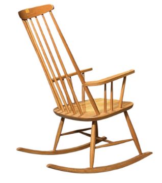 Yrjö Ilmari Tapiovaara for Asko - a vintage mid century c1960s Finnish modern design beech framed rocking chair. The chair with a spindle backrest, shaped arm rests & saddle seat rest. All raised on sleigh rockers.