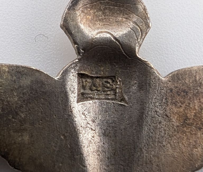 A WWII Second World War British Parachute Regiment lapel pin badge featuring an open parachute topped with a Kings crown and lion between a pair of wings.