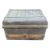 A vintage armoured metal travelling trunk having a secured safety latch mechanism opened by sliding the bar in each direction and lifting the latches and raised nut protrusions. Measures approx 43x43x60cm.